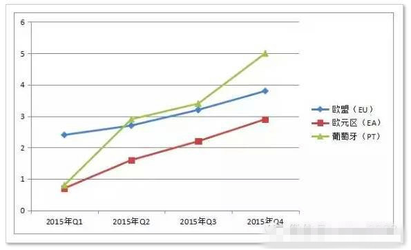 上图为葡萄牙2011年-2016年GDP增长率线状图。在经济恢复的基础上,葡萄牙房价随之上涨。