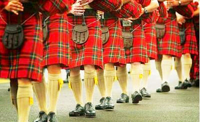 男人穿裙子在世界上不多见,苏格兰男人就是其中一例。他们头戴小黑呢帽,身着花格裙及短袜,手上拿着管风笛,这是苏格兰男人引以为傲的打扮。苏格兰人爱穿花格裙,是因为不同图案的花格布代表着不同氏族。每一个氏族都为自己设计一种代表氏族精神及血缘关系的花格布裙。当人们穿上自己氏族的花格布,也同时穿出了他们族人的骄傲、责任与忠诚。